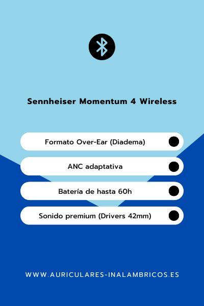 Los Momentum 4 son la gama alta; los Sennheiser Accentum son la gama media-alta. Los Momentum 4 ganan en todo: mejor calidad de sonido (drivers de 42mm vs 37mm), mejor ANC, códec aptX Adaptive, estuche rígido y controles táctiles. Los Accentum son una opción fantástica si quieres el «sonido Sennheiser» y buena batería (50h) por menos dinero, pero los Momentum 4 son la experiencia completa.